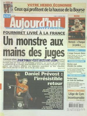AUJOURD'HUI EN FRANCE [No 1501] du 09/01/2006 - FOURNIRET LIVRE A LA FRANCE - UN MONSTRE AUX MAINS DES JUGES - IRAK - L'OTAGE FRANCAIS LIBERE - BRETON VEUT ETENDRE LES SOLDES - RACKET DANS UN TRAIN DE BANLIEUE - LES SPORTS - BOXE AVEC MORMECK - DANIEL PREVOST L'IRRESISTIBLE RETOUR La revue