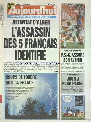 ![AUJOURD'HUI [No 15531] du 11/08/1994 - ATTENTAT D'ALGER - L'ASSASSIN DES 5 FRANCAIS IDENTIFIE - COUPS DE FOUDRE SUR LA FRANCE - LES SPORTS - ATHLETISME ET PEREC - COUPE D'EUROPE DE FOOT AUJOURD'HUI [No 15531] du 11/08/1994 - ATTENTAT D'ALGER - L'ASSASSIN DES 5 FRANCAIS IDENTIFIE - COUPS DE FOUDRE SUR LA FRANCE - LES SPORTS - ATHLETISME ET PEREC - COUPE D'EUROPE DE FOOT](https://images-eu.ssl-images-amazon.com/images/I/518JaiWAJSL.jpg)
