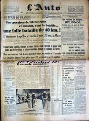 Descriptions AUTO (L') [No 13364] du 22/07/1937 - TOUR DE FRANCE - S. MAES - LAPEBIE - CHOCQUE - CHAMPIONNAT DU MONDE DE FLEURET - BOUGNOL - ATHLETISME - FRANCE- ANGLETERRE - DEMI-FINALES DU CHAMPIONNAT DU MONDE DE LUTTE. Télécharger