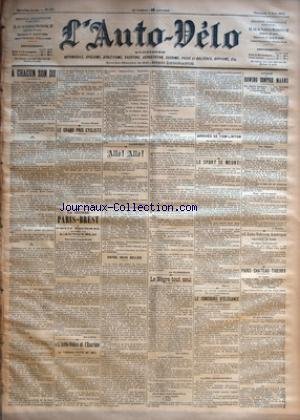 .A CHACUN SON DU PAR GEORGES PRADE - LE GRAND PRIX CYCLISTE PAR GEO LEFEVRE - LA COURSE PARIS-BREST DU PETIT JOURNAL ORGANISEE PAR L'AUTO-VELO - NOUVEAUX ENGAGEMENTS PAR GEO LEFEVRE - +ŒL'AUTO-VELO+« ET L'ESCRIME - LE TOURNOI D'EPEE DE 1901 - RESULTATS D'HIER - ALLO! ALLO! - ENTRE DEUX SELLES PAR H. DESGRANGE - LE TELEPHONISTE - LE NEGRE TOUT SEUL PAR GEO LEFEVRE - ARRIVEE DE TOM LINTON PAR RAY - LE SPORT SE MEURT! PAR GEO L. - APRES LA COUPE GORDON-BENNETT ET PARIS-BORDEAUX - LE CONCOURS D'ELEGANCE - LA FETE AEROSTATIQUE PAR MANIERES - AVIRON - ROWING CONTRE MARNE - UN MATCH CLASSIQUE - LES FERVENTS DU BOUT DE BOIS - LES EQUIPES - L'ORGANISATION - POUR VOIR LE MATCH PAR L. MANAUD - +ŒL'AUTO-VELO+« EN AMERIQUE - VICTOIRE DE ROSS PAR H. RAY - PARIS-CHATEAU-THIERRY (6E ANNEE) - DE 1896 A 1901 - D'UNE FEDERATION A L'AUTRE - LA SIXIEME EPREUVE ANNUELLE - LES ENGAGEMENTS - LES PRIX - L'ITINERAIRE - L'ENTRAINEMENT - DETAILS - UN PEU D'HISTOIRE..