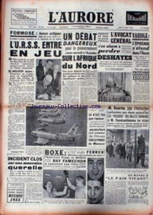 AURORE (L') [No 3232] du 31/01/1955 - FORMOSE - L'U.R.S.S. ENTRE EN JEU - AFRIQUE DU NORD - L'AVOCAT GENERAL S'EST ACHARNE A PERDRE DESHAYES - VARIOLE - M. BAURES ET LES POLICIERS DES BALLETS ROUMAINS ET M. COSTANTINESCO LEUR VICTIME - BOXE - FERRER - PADDY DE MARCO - RAY FAMECHON. Description