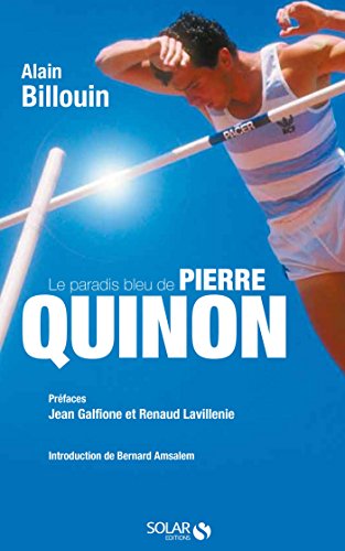 Pierre Quinon a ouvert cette voix royale. Il a ébloui toute une génération Mais, derrière la cuirasse du champion audacieux et conquérant, perce la fragilité d'un jeune homme romantique et artiste, très introverti, trop réfléchi, soudain exposé à l'indifférence, aux doutes, à l'ascension du phénomène Bubka et à trop de blessures. Son destin va basculer. Il se cherche. Il végète. Il est déstabilisé. Sa famille éclate. Et dans sa fuite éperdue malgré l'aide de ses proches, il sombre... Il s'évade quelque temps dans la peinture mais son état dépressif s'avère inguérissable. Le 17 août 2011, comme son inspirateur, le peintre Nicolas de Staël, Pierre Quinon s'est envolé définitivement dans la nuit immaculée de ses splendeurs et le paradis bleu de ses victoires passées, en se jetant d'une fenêtre. Cette disparition douloureuse d'un champion olympique en quête d'absolu suscite aussi, à côté de l'aventure magique, une question abordée dans " Le paradis bleu de Pierre Quinon " : la célébrité olympique peut-elle devenir aussi trop pesante ?