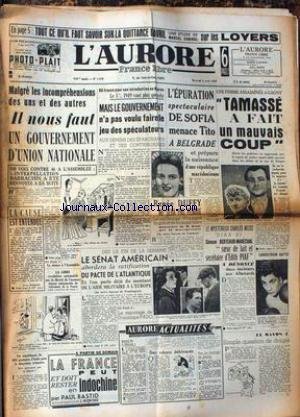 AURORE (L') [No 1419] du 06/04/1949 - LES LOYERS - L'EPURATION SPECTACULAIRE DE SOFIA MENACE TITO A BELGRADE - TAMASSE A FAIT UN MAUVAIS COUP - LA RATIFICATION DE L'ATLANTIQUE - SANDEYRON BATTU - BOXE - LE MYSTERIEUX CHARLES WEISS DERA SI SIMONE BERTEAUD-MARECHAL - SOEUR DE LAIT DE PIAF - A DENONCE DEUX RESISTANTS AUX ALLEMANDS. Description
