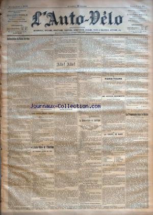 AUTO VELO (L') [No 230] du 01/06/1901 - AUTOMOBILES DE VOIES FERREES PAR MAX DE NANSOUTY - TOUS CONTRE MAJOR TAYLOR PAR G. L. - +¼L'AUTO-VELO+« ET L'ESCRIME - LE TOURNOI D'EPEE DE 1901 - CONVOCATION - RESULTATS - ALLO! ALLO! - BIZARRE PAR H. DESGRANGE - LE TELEPHONISTE - LA REOUVERTURE EN AMERIQUE - VICTOIRE DE MICHAEL - STINSON BAT WALTHOUR - TURNER TRIOMPHE SUR ROUTE - L'UNIVERSITE DE YALE CHAMPION INTERSCOLAIRES - AU COLISEUM PARK - AU VELODROME D'HILL'S GROVE - Description