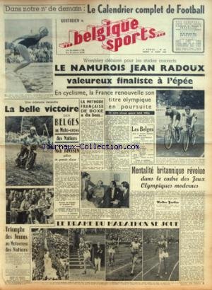 LE DRAME DU MARATHON SE JOUE - TRIOMPHE DES JEUNES AU MOTOCROSS DES NATIONS - NICK JANSSEN - MENTALITE BRITANNIQUE REVOLUE DANS LE CADRE DES JEUX MODERNES PAR FOSTIER - LE NAMUROIS JEAN RADOUX FINALISTE A L'EPEE - LA METHODE FRANCAISE DE BOXE A DU BON -.