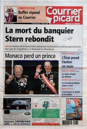 Descriptions COURRIER PICARD [No 18944] du 07/04/2005 - CONSTITUTION - BUFFET REPOND AU COURRIER - LA MORT DU BANQUIER STERN REBONDIT - MONACO PERD UN PRINCE - ENVIRONNEMENT - L'ETAT PREND L'EOLIEN EN MAIN - BAIE DE SOMME - LE VOLEUR D'OEUFS AU TRIBUNAL - HOCKEY SUR GLACE - LE NOUVEAU PRESIDENT CONNU CE SOIR - DOULLENS - LA PERRUCHE LE POULET ET LES BEBES Télécharger